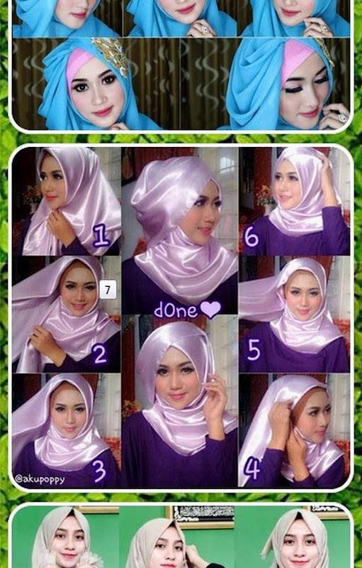 For those of you who have a round face, there are tricks to make the face look thinner. Choose hijab with a thin cloth and flowing, then advance the veil to cover half the cheeks. Most important to remember, choose a hijab bond model that is not too heavy at the top.