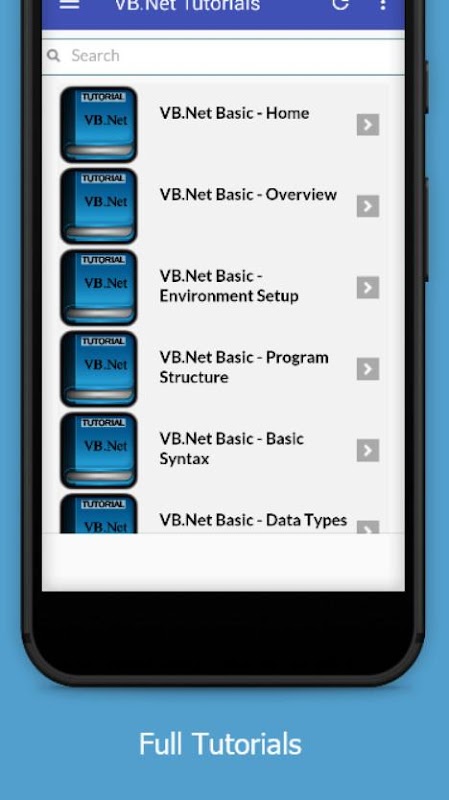 Tutorials for VB.Net Offline is a complete application for those of you who want to learn VB.Net easily and for free. There are dozens and even hundreds of VB.Net tutorials starting to base for beginners to advanced. All these tutorials you can read offline without the need to connect to the internet or mobile data.