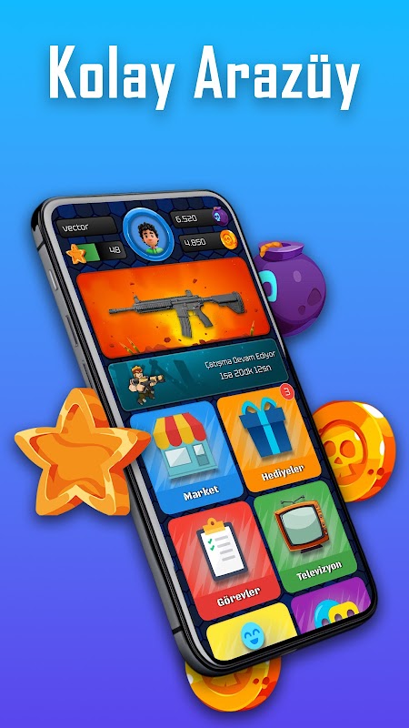 플레이어는 앱 내 디자인을 원하는 대로 꾸밀 수 있습니다. 무기 변경, 무기 스킨 획득, 프로필 편집, 외형 설정 등 다양한 개인 설정 옵션을 이용할 수 있습니다. 프로필 섹션에서는 영상을 추가하거나 삭제하는 등 콘텐츠를 관리할 수 있습니다.