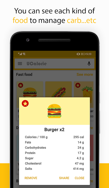 UCalorie app is a free app that allow you to manage and calculate your needs from calories by showing you the amount of calories, carbs, fats ...etc in the food that you eat every day.