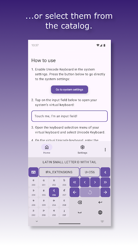 앱을 전환하거나 번거롭게 복사하여 붙여넣지 않고도 유니코드 문자를 간편하게 입력하세요. 키보드에서 바로 입력하세요!