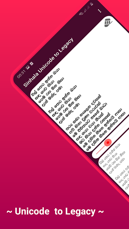 기존 신 할라 글꼴을 사용하여 입력 할 수없는 경우이 앱은 사용자를 위해 설계되었습니다.이 앱을 사용하면 유니 코드 문자를 레거시 문자로 쉽게 변환 할 수 있습니다.이 앱은 유니 코드로 작성된 모든 것을 어디서나 복사하여 붙여넣고 변환 할 수있는 기능이 있습니다. 레거시 문자로 변환하고이 레거시 문자는 클릭 한 번으로 복사 할 수 있습니다.
