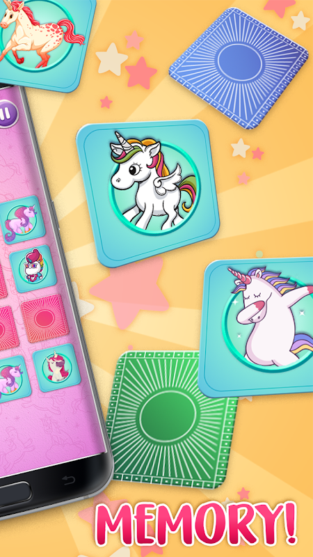 메모리 게임 을하는 것처럼? 귀여운 유니콘 이미지를 일치시켜 기억을 연습하십시오. 이 퍼즐 게임에서 두 개의 카드를 매치하여 모든 쌍을 발견하십시오. 일치하는 게임 을 무료로 다운로드하고 재미있는 카드를 찾으십시오. 특정 카드의 위치를 기억하십시오! 가장 짧은 시간 동안 동일 동물 쌍을 일치시킵니다! 당신의 마음을 향상시키고 당신이 얼마나 똑똑한 지 보여주십시오! 마음을 최상위로 유지하십시오!