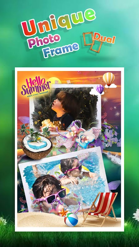 Choose a photo from your gallery and add it to the selected frame, you can add 2 photos in a single frame. Add text, swap or flip image or put your favorite sticker on it.