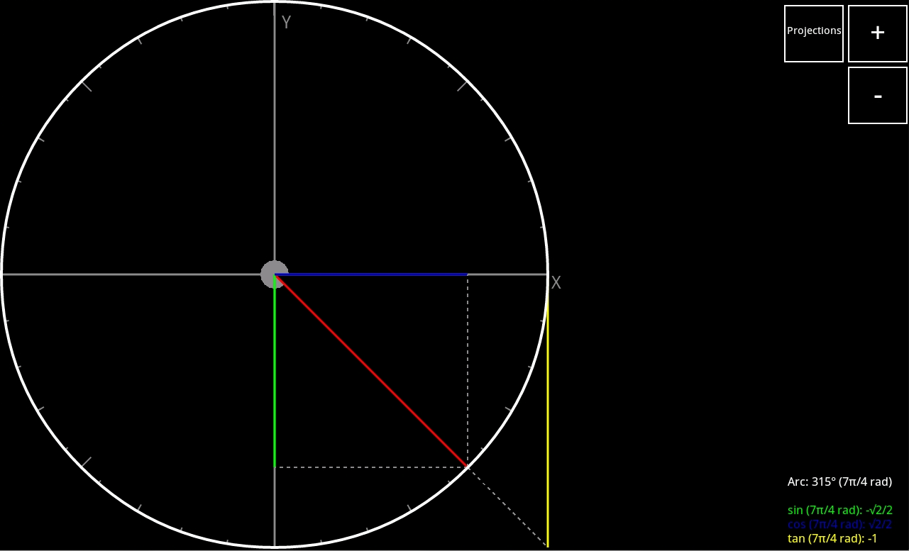 - Understand how the projections of the arcs sine, cosine and tangent work in the unit circle (or trigonometric circle);