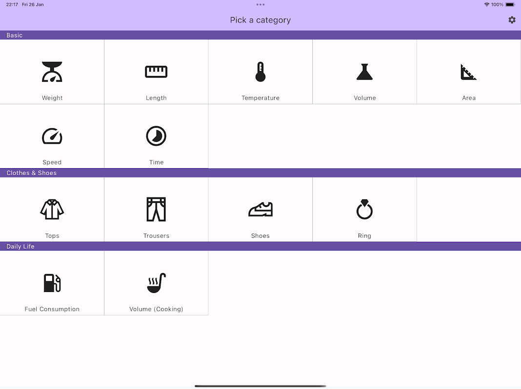 - 단위를 원활하게 변환합니다: 무게, 길이, 온도, 부피, 면적, 속도, 시간.