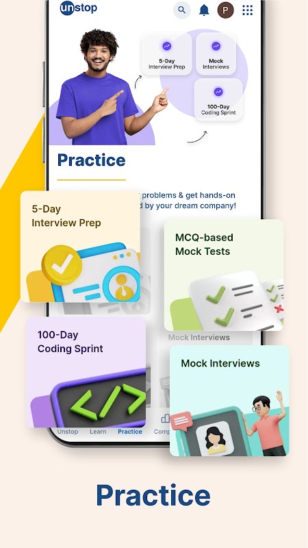 최고의 기업 표준을 기반으로 구축된 Unstop은 기술 및 경영 분야 모두에 대한 코딩 연습, 프로젝트 및 기술 평가를 제공합니다. 일일 진행 상황을 추적하고 배지를 획득하여 기술을 완벽하게 개발할 수 있습니다.