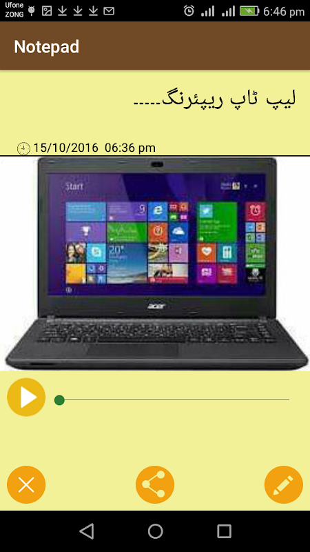 You can also sort your notes and reminders by using category and search bar in Urdu notepad app. It allows you to attach pictures or recording with notes. Share your notes and reminders on social media with your friends and family members.