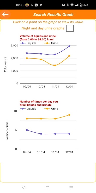 이 애플리케이션을 사용하면 낮과 밤의 수분 섭취 및 배뇨와 관련된 모든 이벤트를 매우 쉽게 기록할 수 있습니다. 이벤트 데이터와 그래프가 포함된 PDF 및 Excel 보고서를 검색하고 보고 작성할 수 있습니다. 이 보고서를 인쇄하거나 물리 치료사/비뇨기과 의사 또는 다른 의사에게 직접 보낼 수 있습니다. 앱이 하루 종일 음료수를 마시도록 상기시켜 주도록 알림 설정을 구성할 수도 있습니다.