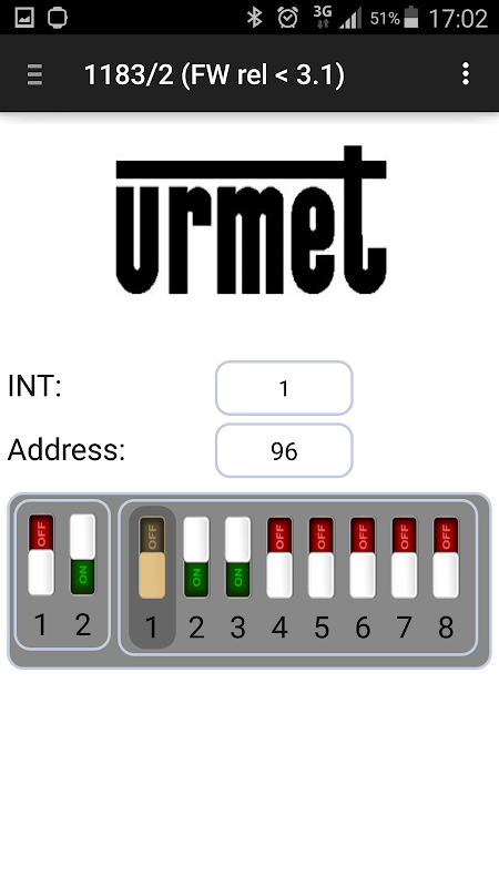 장치를 프로그래밍하려면 다음 코드 '목록에서 항목을 선택, 키보드에 의해 아파트 번호를 삽입하고 2VOICE 장치 모바일에 표시된 딥 스위치 구성에 복사합니다.