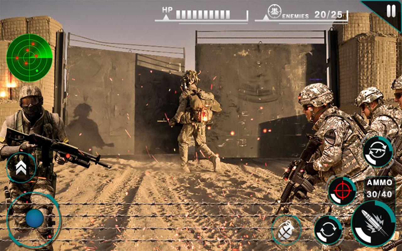 Us Army Commando Frontline Special Group Forces an action packed adventure filled game of Special Forces who have joined hands to fight off the brutal enemy troops on US border. The heroes are up for the real war. You are on the call of war. Lead army commando war against terror and crime with help of trained IGI commandos in battlefield. Eliminate gangs of terrorists, clear border area and bring peace back in desert areas around. Step forward from your army base camp to clear and kill enemies. Be brave to show your courage in frontline commando assault war.