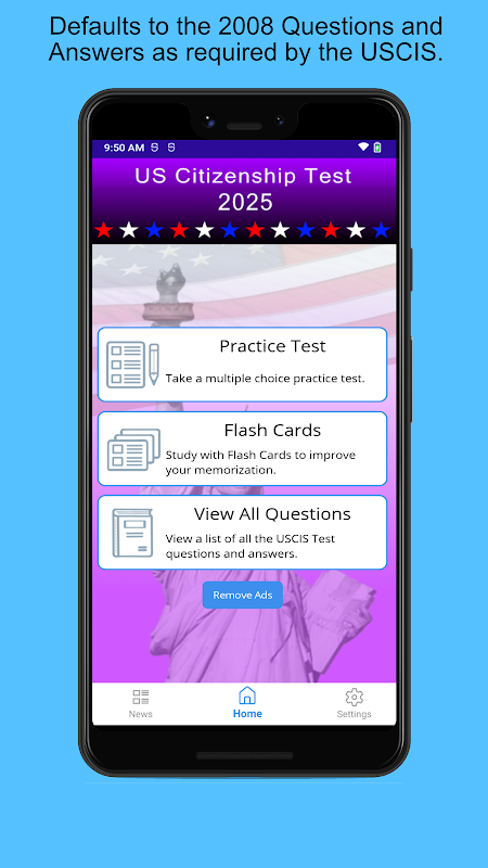 이 앱을 사용하여 모든 질문에 대한 답을 배우고 실제로 USCIS 시민권 시민 시험을 연습해 보세요. 100개 질문 모두에 대한 플래시 카드가 제공됩니다. 무작위 순서로 보거나 USCIS 문서에 제시된 순서로 확인하세요. 연습 시험을 치르고 실제 면접 시험에 합격할 만큼 좋은 점수를 받을 수 있는지 확인하세요.