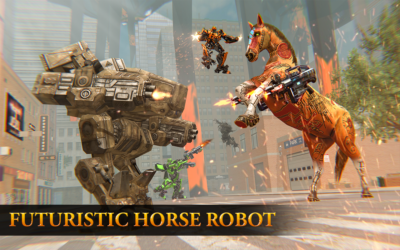 The game is full of war between robots in a futuristic city, where only the best army car transformation experts can survive. You have the option to transform robot car and become superhero warrior robot. US War Robot Transformation - Flying Horse Robot brings in a new era to the transformation games, especially robot fighting games. Now you have the option to fight with robot jump and robot unicorn attacks. Unlike other robot shooting games, you can use advanced military weapons and fight with your opponents. There are multiple challenging missions in each level to be completed. You can use real robots in the city battle and fight for justice and peace against evil forces.