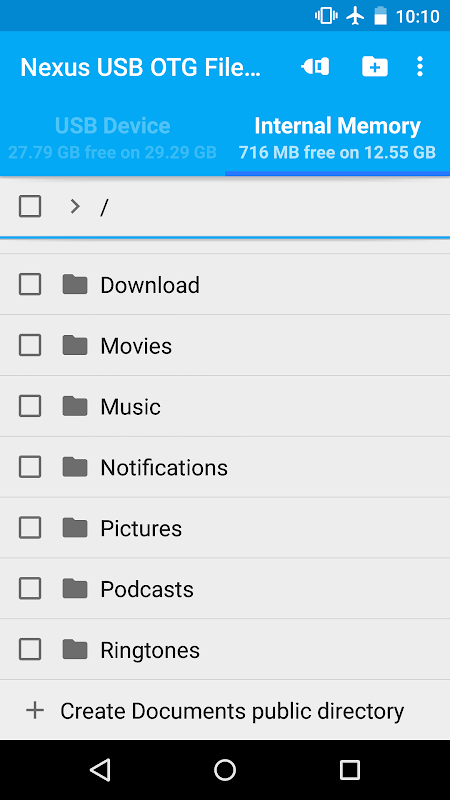 넥서스을위한 USB OTG 파일 관리자는 이제 장치의 모든 파일에 액세스 할 수 있습니다 "고급 모드"를 포함한다. 이제 공식 안드로이드 공개 디렉토리의 외부에있는 파일 및 디렉토리를 생성 할 수 있습니다. 이것은 고급 사용자만을위한 것입니다!