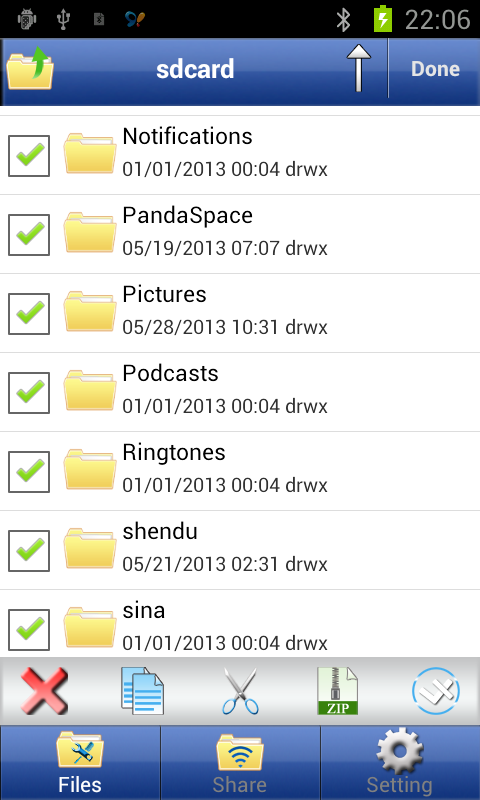 * 파일 및 폴더 공유를위한 지원 (이메일을 통해, 블루투스)