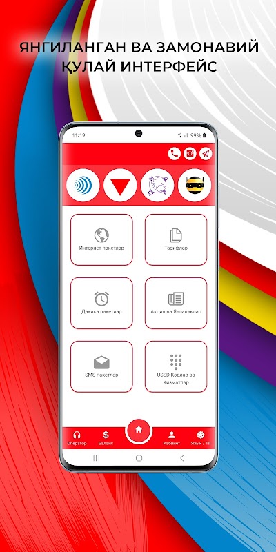Bundan tashqari, ilovadan foydalanib, siz o'z tarifingizni bilib olishingiz, hamda uni boshqa tarifga o'zgartirishingiz, qo'shimcha daqiqa va SMS'lar sotib olishingiz yoki qo'shimcha Internet trafik paketlarini sotib olishingiz mumkin.