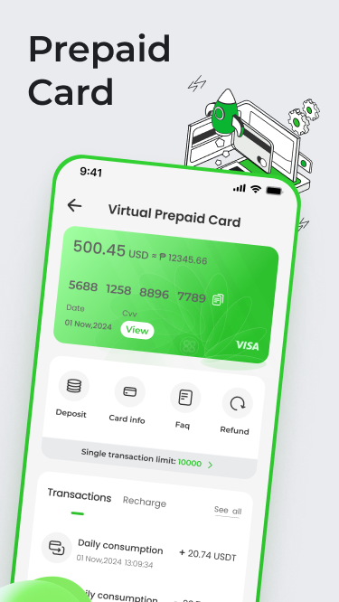 Virtual Currency Prepaid Cards: Easily purchase and manage your virtual currency prepaid cards for transactions anytime, anywhere.