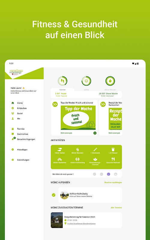 Vbewegt는 건강한 삶을 위한 탄탄한 지식, 도전, 수많은 아이디어로 여러분을 지원합니다.