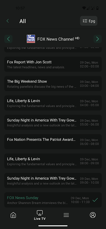 - EPG 가이드가 포함된 라이브 TV