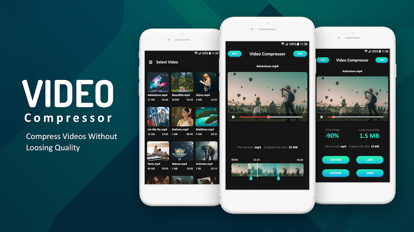 Video compressor. Compress Your Favorite Videos & Easily Share them on Social Media & Even with Your Friends & Family. You Will Find Video Trimmer helpful at Times When You want to Reduce the Total File Size or Some Apps Not Supporting Larger File Sizes.