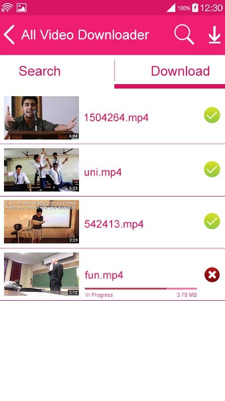 HD Video downloader detects videos automatically and gives an option of available videos, you can download them with just one click. All video download manager allows you to pause, resume and remove downloads.