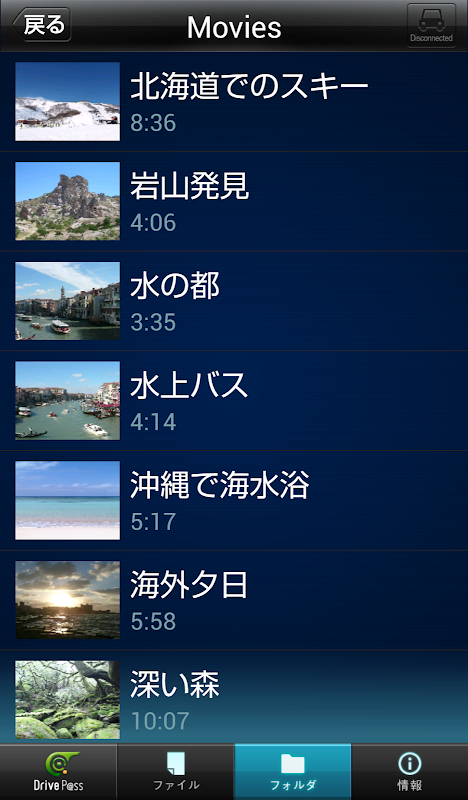 스마트 폰에서 동영상 콘텐츠를 카 내비게이션의 큰 화면에서 재생하고 차내에서 즐길 수 있습니다. 네비게이션 화면에서 직접 조작 할 수있어 컨텐츠의 선택 및 재생도 간단!