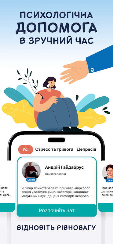 우크라이나인의 정신적, 정신적 건강을 지원하는 플랫폼입니다. 온라인 채팅