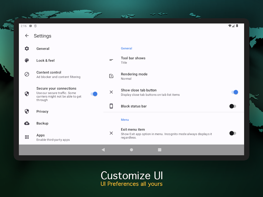 이 안드로이드용 개인정보 보호 브라우저로 빠르고 안전하며 비공개적인 탐색 경험을 즐겨보세요. 전 세계의 법률 콘텐츠에 액세스하고, 고급 암호화로 데이터를 보호하고, 광고나 추적기 없이 웹을 즐기세요. 지금 VPN으로 바이러스성 프록시 브라우저를 다운로드하세요!