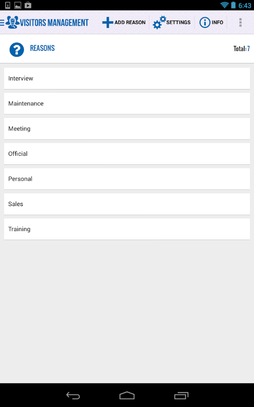 This visitor management system tracks information about visitors to your building or site. Visitors details include name, email, mobile, id proof, company, reason for visit, date and check-in and check-out times, person to be visited.