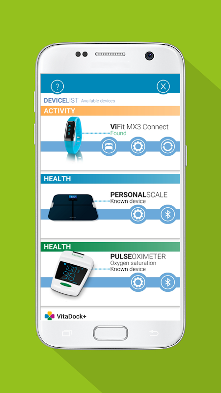 스마트폰이나 태블릿을 VitaDock® Online 플랫폼에 연결하고 중요한 데이터를 동기화하십시오. Bluetooth 4.0 Low Energy를 통해 다양한 Medsana® Connect 지원 장치에 무선 연결을 설정하십시오.
