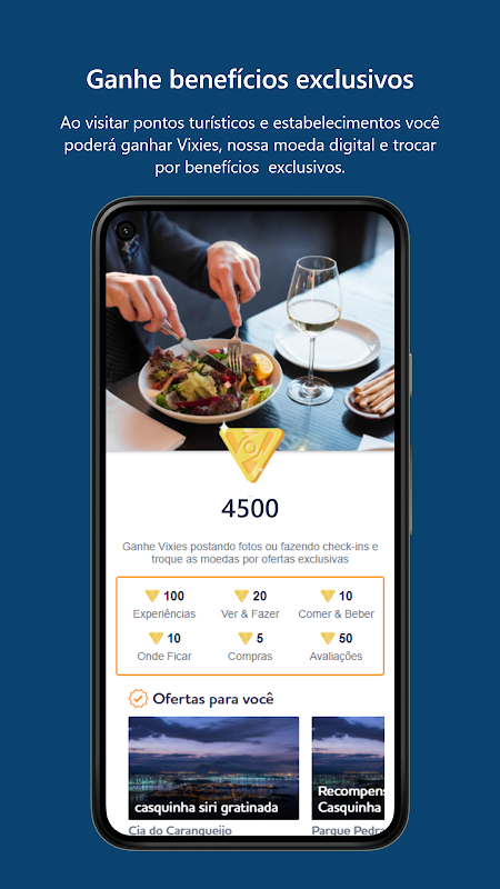 Com o Vixperience, você pode apreciar a deliciosa culinária capixaba, se hospedar nos melhores hotéis, visitar grandes atrações culturais e ainda ganhar bônus e ofertas exclusivas por meio dos Vixies, a moeda digital da plataforma, ao fazer check=in nos estabelecimentos participantes e nas experiências disponíveis.