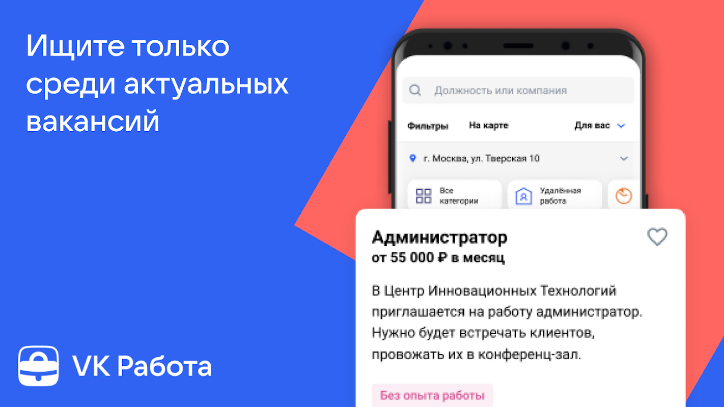 VK Работа – это постоянно пополняемая база вакансий и резюме. С VK Работа поиск работы стал еще проще. Вам нужна удаленная работа, фриланс или подработка? Вы хотите найти работу без опыта, на дому, онлайн или работу рядом с домом? Устанавливайте VK Работа, будьте всегда в курсе новых вакансий поблизости и работа будет!
