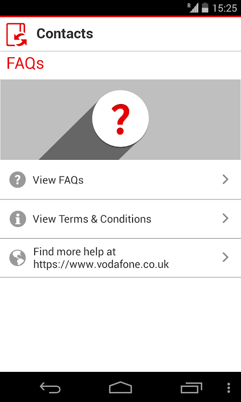 Vodafone Contacts is a service for Vodafone customers that backs up your phone's address book and contact details safely and securely. Simply, it means you’ll never lose your address book ever again, even if you lose or break your phone.