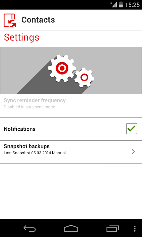 • Choose to sync manually and back up the latest version of your address book whenever you want.