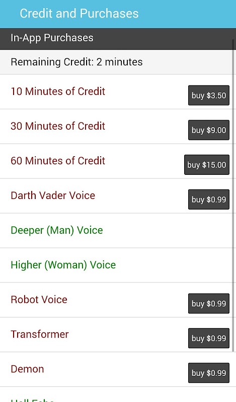 - You can now hear how each voice will sound using the app. To view these options go to "settings" > "Credits & Purchases", then you will see the speaker icon next to each voice to hear the different voices.