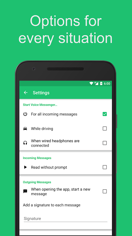 ★ Driving detection - Have your messages read aloud when driving!