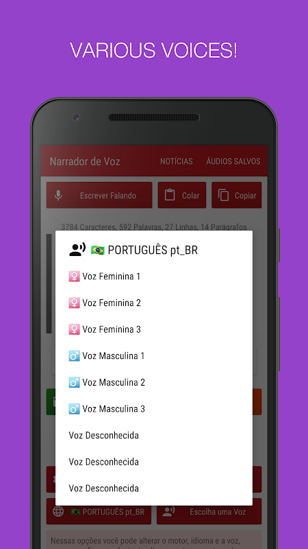 Listen to texts aloud or convert (TEXTS OF ANY SIZE) to audios!