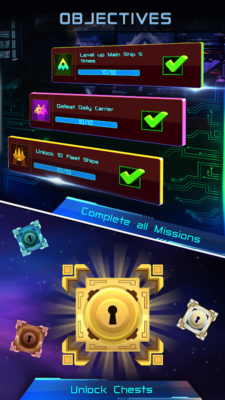 - 함장을 모집하고 선박을 업그레이드하여 장엄한 우주 함대를 건설하십시오