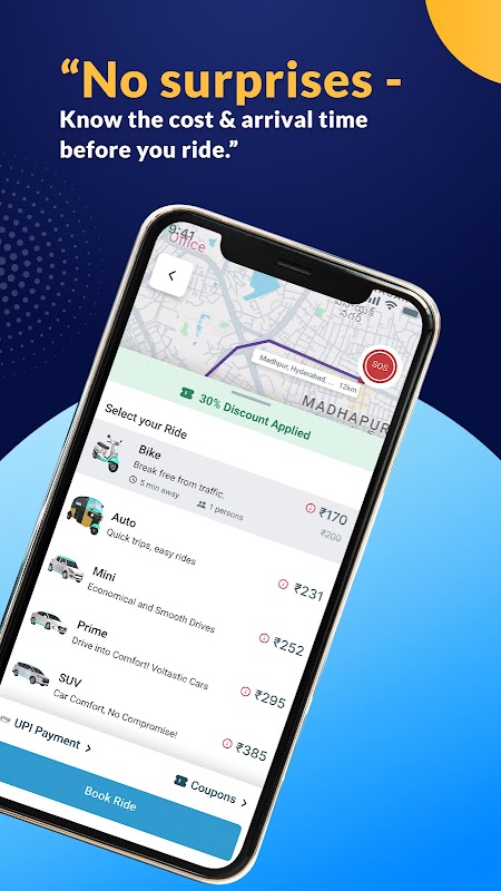 UPI 및 현금 결제: Volta 고객은 탑승 완료 후 UPI 또는 현금을 통해 운전자에게 쉽게 요금을 지불할 수 있습니다.