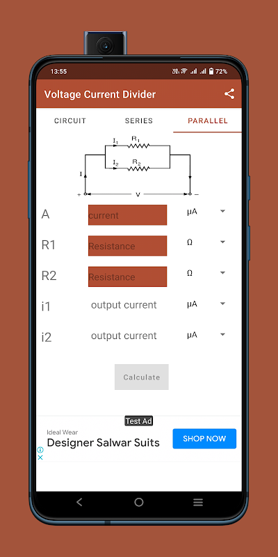 전압 전류 분배기 앱은 전압 및 전류 분할 값을 계산합니다.
