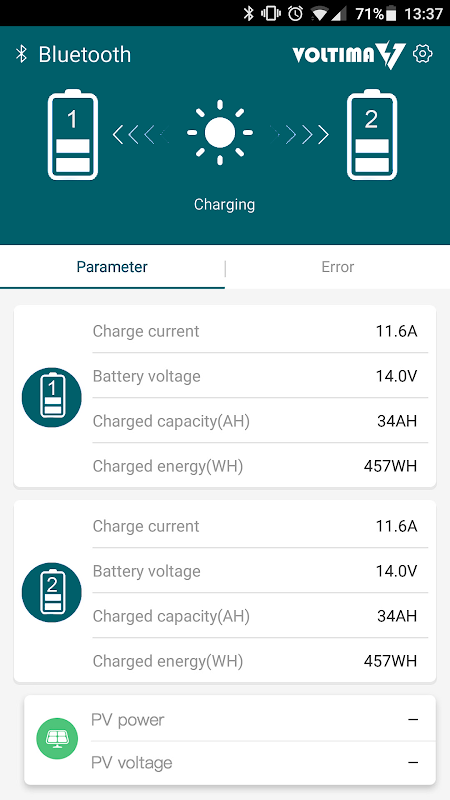 A tool for connecting solar controller or DC-DC battery charger. Send the operating parameters of the device to the app through the Bluetooth Dongle, which can quickly read the operating parameters of the device and record the historical data of the device