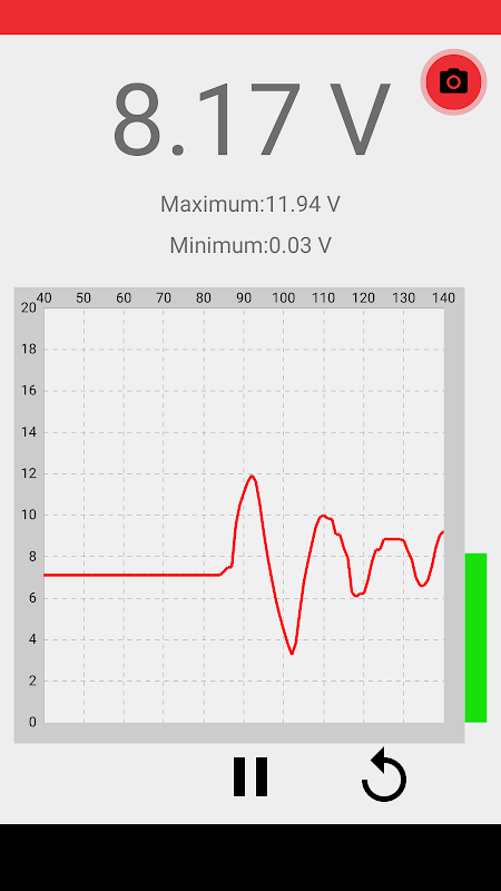 Con esta aplicación puede medir el voltaje con el teléfono móvil Android. Proporciona las unidades de voltaje medido de forma numérica y gráfica.