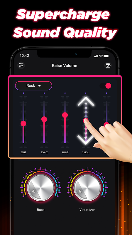 볼륨 부스터를 사용하면 🎶 음악, 비디오, 벨소리, 알람 등과 같은 모든 장치 미디어의 볼륨을 높일 수 있습니다. 사운드 부스터와 이퀄라이저를 사용하여 오디오 출력에 추가 효과를 주고 오디오 경험을 더 크고 더 정확하게 만드세요. 원하는 사운드 선명도의 양을 선택하여 저음 및 고음 레벨을 제어할 수도 있습니다.