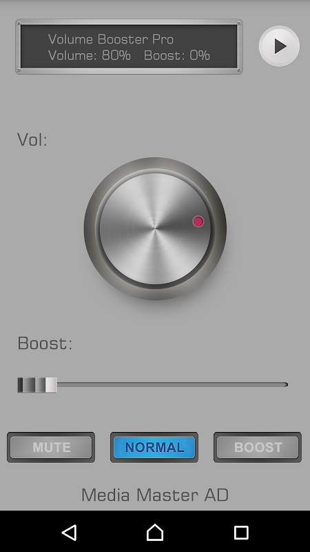 Volume Booster Pro provides direct access to Android Media Player in one click! But it is very INPORTANT to know that there аrе music players that when launched they take control of the audio chanels and do not allow external apps to change audio settings. In this case Volume Booster will not work and must be tested with another Music Player. It has been tested that the Booster work perfectly with online players. Try it and enjoy the power of the Boosted Sound.