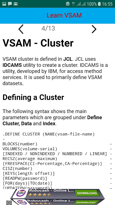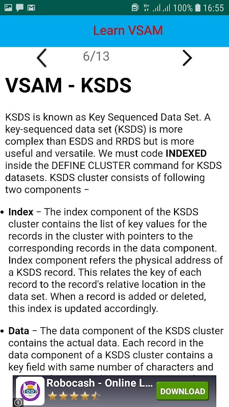VSAM stands for Virtual Storage Access Method. VSAM is a file storage access method used in MVS, ZOS and OS/390 operating systems. It was introduced by IBM in 1970's. It is a high performance access method used to organize data in form of files in Mainframes. VSAM is used by COBOL and CICS in Mainframes to store and retrieve data. VSAM makes it easier for application programs to execute an input-output operation.
