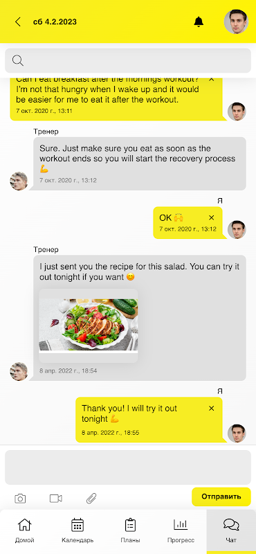 체육관 및 가정에서의 개별 훈련 계획 (상세한 설문 조사 후) + 스마트 폰의 영양 계획.