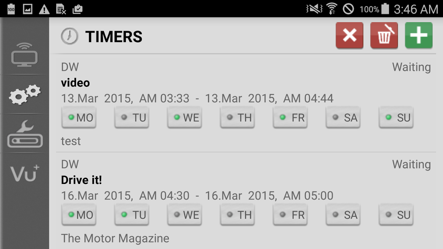 - EPG에서 또는 수동으로 하나 타이머를 (추가, 편집, 삭제) 관리합니다.