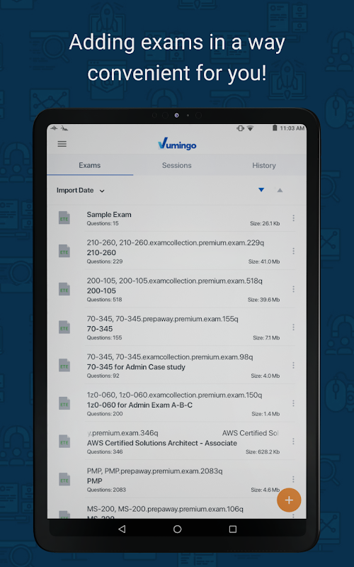 Vumingo Exam Testing Engine은 인기있는 시험 응용 시험 시험 엔진의 안드로이드 버전입니다. 이동 중에도 .ete 파일에서 테스트를 수행 할 수 있습니다.