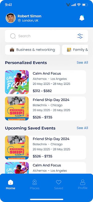Vybra의 지능형 추천 시스템은 사용자의 관심사, 앱 내 행동, 위치 데이터를 지역 트렌드와 결합하여 사용자의 기분에 맞는 이벤트와 장소를 제안합니다. 더 많이 탐색할수록 Vybra는 더욱 스마트해져, 미처 몰랐던 숨겨진 보석 같은 장소들을 발견하게 됩니다.