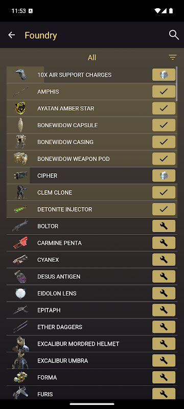 주조소는 여러분이 오프라인일 때도 열심히 일하고 있을 거예요. 여러분의 휴대전화에서 바로 최신 워프레임, 무기 및 장비들을 제작해 보세요.